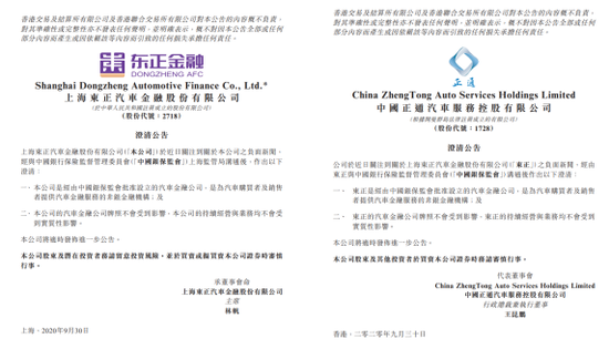 事实上,此前市场早已流传出东正汽车金融违规遭监管部门重罚的消息。涉事两家公司均在9月30日通过港交所发布澄清公告表示,东正汽车金融公司的汽车金融公司牌照不会受到影响,公司的持牌经营业务也不会受到实质性影响。