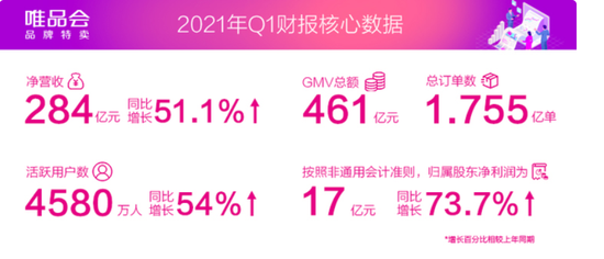 2021年5月,唯品会Q1财报出炉,数据的“美丽”给市场交出了看似满意的答卷。财报显示,唯品会第一季度营收实现284亿元,GMV达461亿人民币;净利润达17亿人民币,维持较高运营水平。总活跃用户数同比大涨54%至4580万人。至此,唯品会表示已连续34个季度盈利。