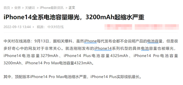官方还是老样子,在发布会上依然未能提及具体电池容量,只是延续了此前的宣传话术,浅浅提了一句“较之iPhone 13系列提升XXX”。