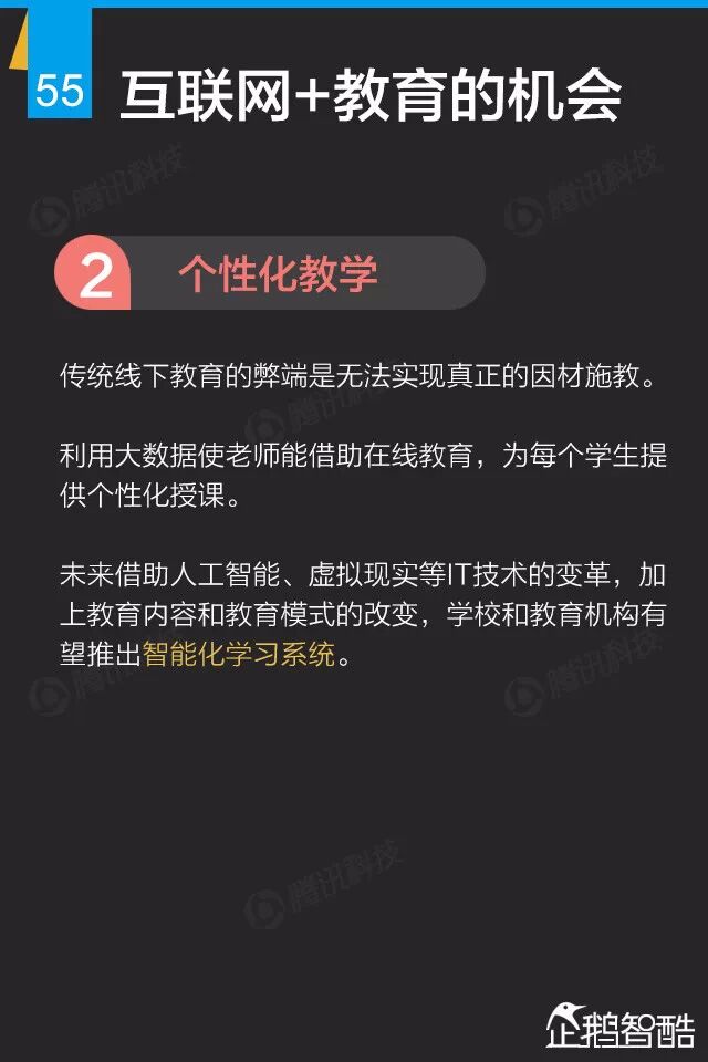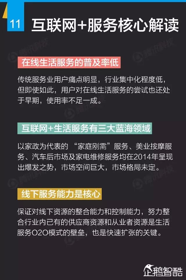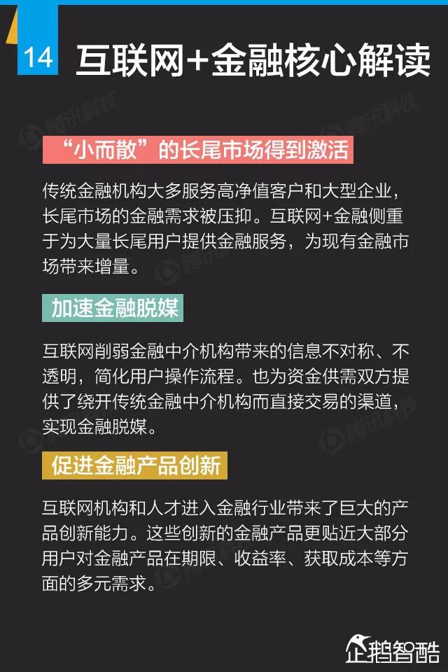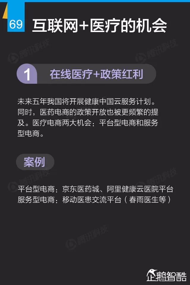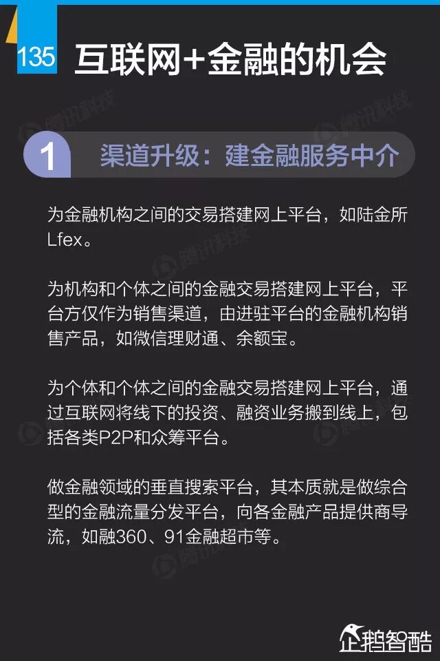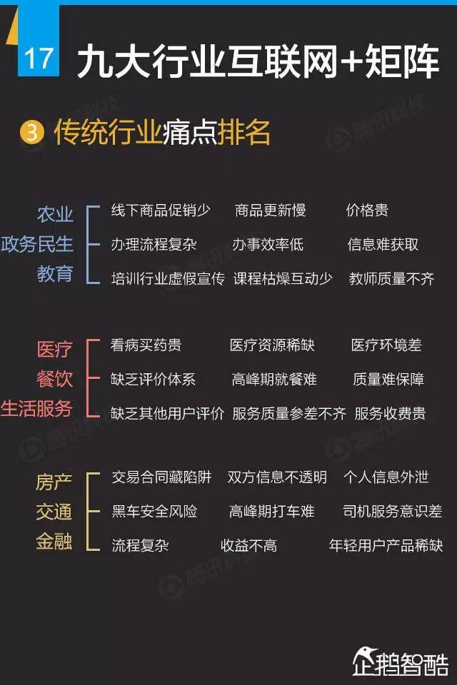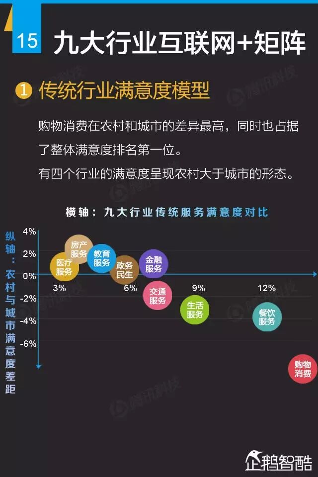 【IT时代网、IT时代周刊编者按】随着信息技术变革,通过互联网与传统行业结合,也产生了更多创新形态演变,互联网+也进一步推动着 新一代信息技术与创新的互动和演进。那么,哪些传统行业最可能被“互联网+”改造?真正的机会在哪?用户的需求和声音谁来汇总和分析?我们有案例可循吗?那些困扰于从业者心头的难关和挑战,可以被解决吗?5月5日,企鹅智酷发布了150页“互联网+”报告,从金融、教育、房产……等9个我们日常生活中息息相关的9个领域进行了解读。