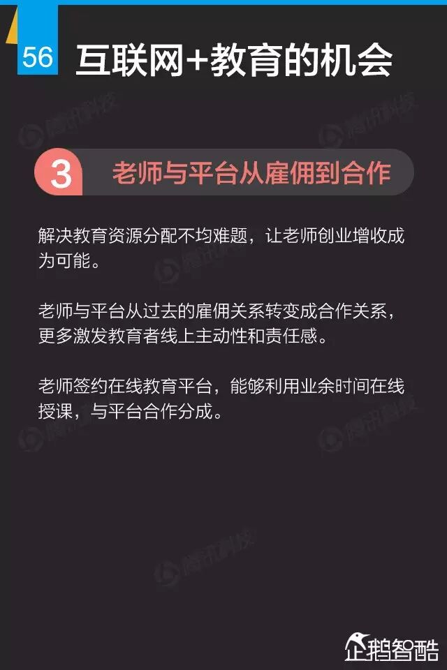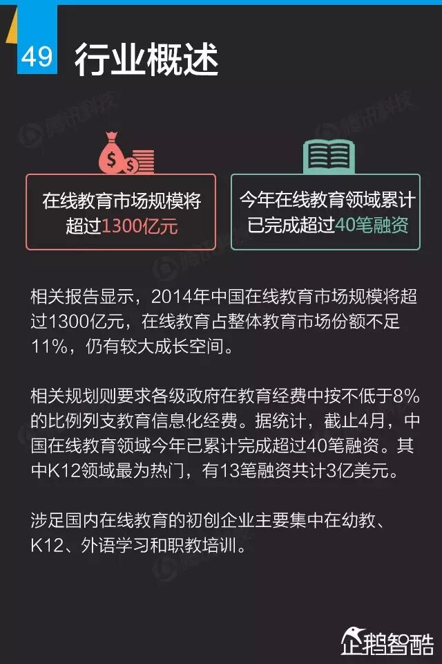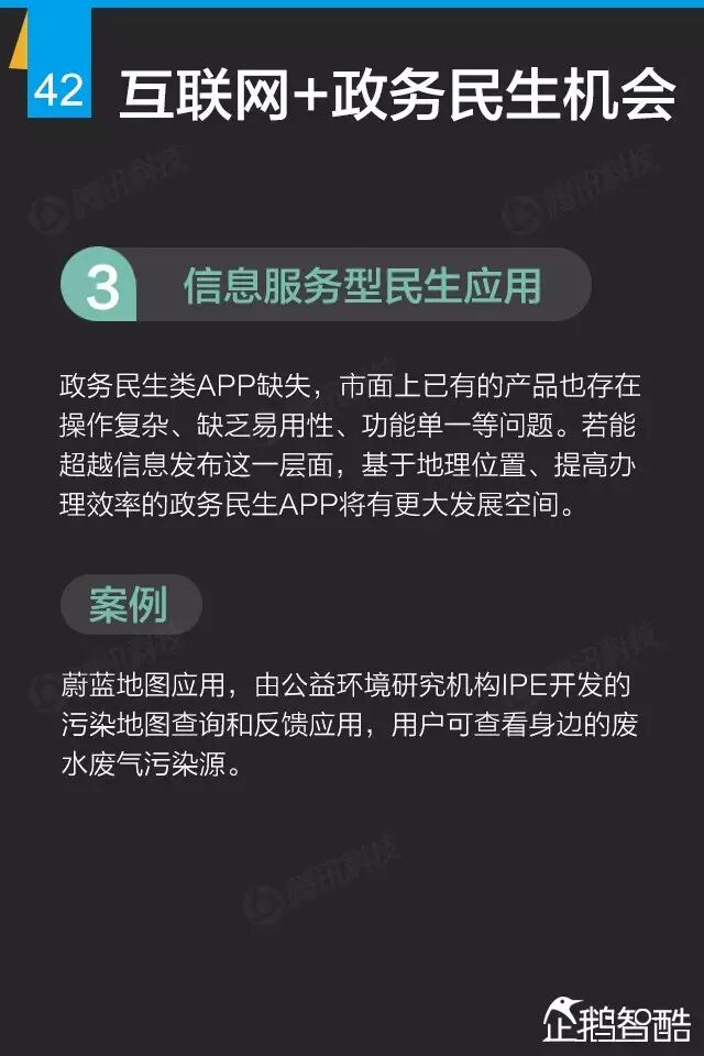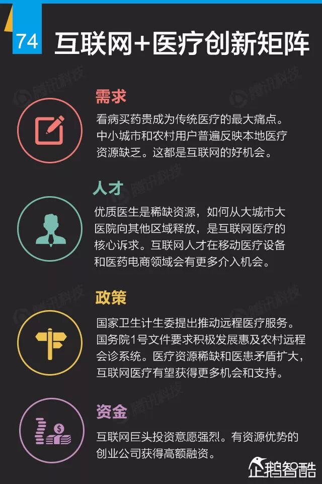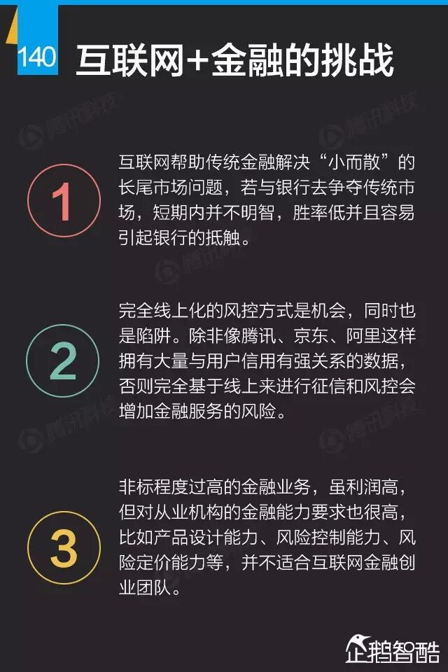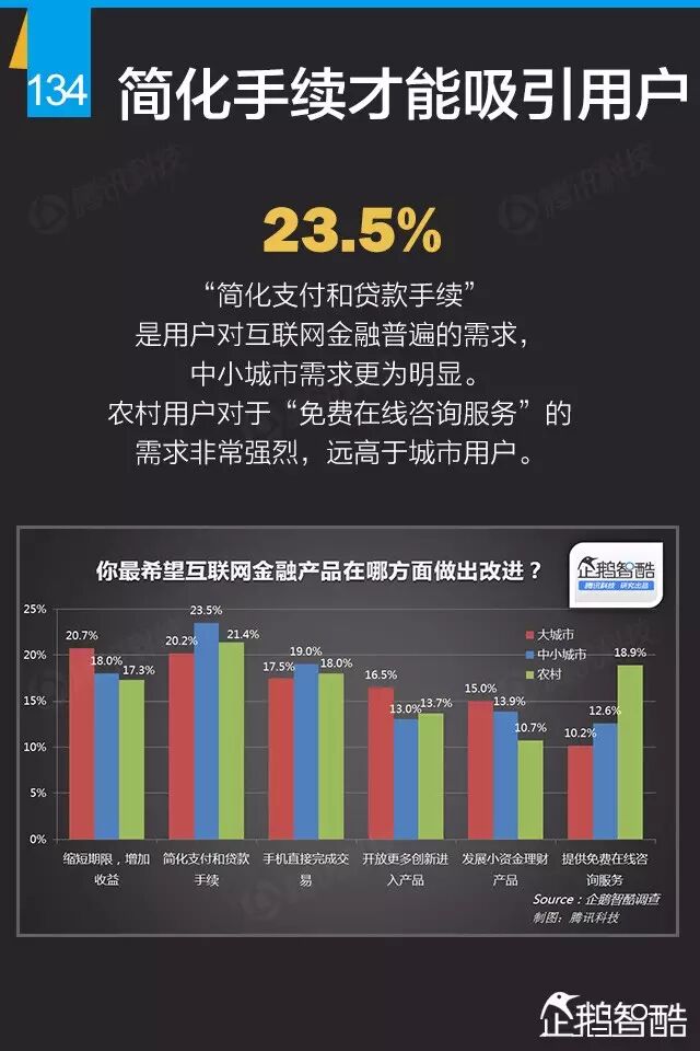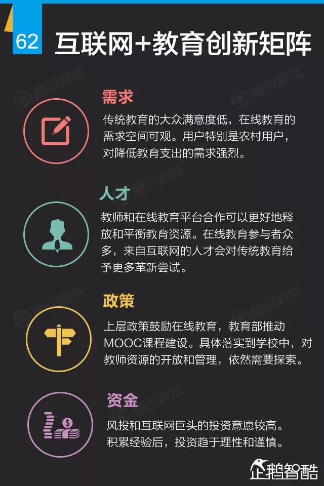 【IT时代网、IT时代周刊编者按】随着信息技术变革,通过互联网与传统行业结合,也产生了更多创新形态演变,互联网+也进一步推动着 新一代信息技术与创新的互动和演进。那么,哪些传统行业最可能被“互联网+”改造?真正的机会在哪?用户的需求和声音谁来汇总和分析?我们有案例可循吗?那些困扰于从业者心头的难关和挑战,可以被解决吗?5月5日,企鹅智酷发布了150页“互联网+”报告,从金融、教育、房产……等9个我们日常生活中息息相关的9个领域进行了解读。