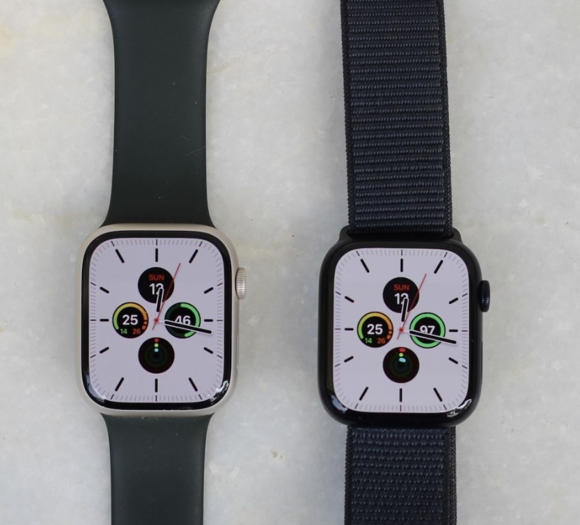 设计和展示,无论你多么仔细地观察 Apple Watch Series 9,你都无法分辨它与 Series 8 甚至之前的 Series 7 之间的区别。设计基本保持不变,因此您可以获得 41 毫米和 45 毫米尺寸的相同方形铝制或不锈钢框架。新的粉红色配色(铝制)是识别 Series 9 与其前身的唯一方法。铝制型号的其他颜色选项包括午夜色(我们的评测单元)、星光色、银色和产品色(红色)。不锈钢版本有金色、银色和石墨色。框架的右侧有熟悉的表冠和药丸形按钮,左侧有扬声器切口。顺便说一句,铝制表款由100%再生铝制成,而回环式运动表带则采用碳中和,含有45%的再生成分。