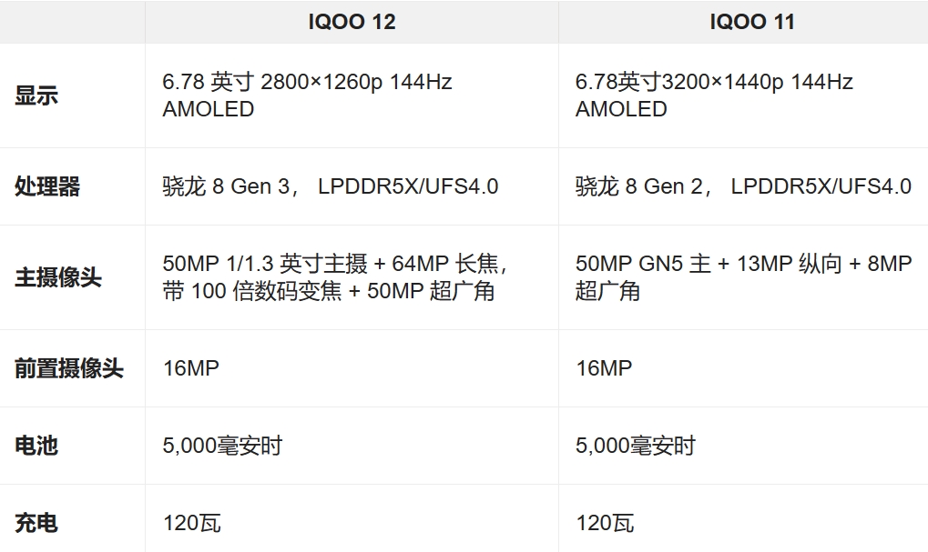 iQOO 12 与 iQOO 11:性能
