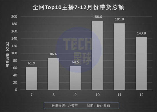 11月开始行业寒意四起,12月不少头部受到波及。从小葫芦平台提供的数据看,全网的头部主播,薇娅、李佳琦、辛巴、雪梨等全网10大主播的总带货额,开始逐渐下滑。很多人会说,虽然11月份有双11,12月其实还有双12。