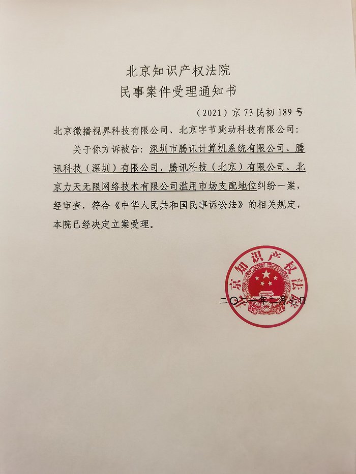 【IT时代网北京报道】日前,北京知识产权法院正式受理抖音诉腾讯垄断纠纷案。该案是自2020年底《关于平台经济领域的反垄断指南(征求意见稿)》公布以来,国内首例发生在互联网平台之间的反垄断诉讼。【责任编辑/邹琳】