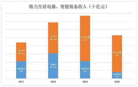 2020年格力“生活电器”销售收入45亿,仅相当于美的“消费电器”收入的4%。