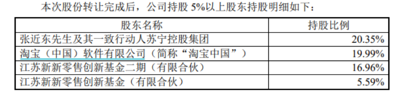 苏宁易购称,除张近东与苏宁控股集团一致行动人外,股份转让完成后上述持股5%以上股东不存在一致行动安排;股份转让后,公司任一股东均无法单独控制股东大会和董事会。因此,股份转让后,公司将处于无控股股东、无实际控制人状态。