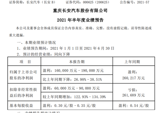 3个多月内股价涨幅133%的长安汽车,被一份业绩预告泼了冷水?