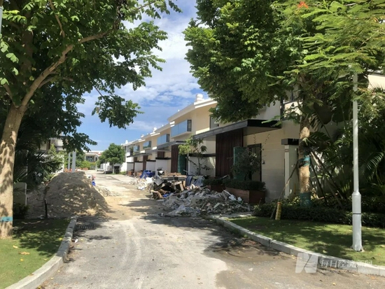 国寿嘉园·逸境,众多别墅仍待装修,进出道路旁多有建筑材料、建筑垃圾 图片来源:每经记者吴泽鹏摄