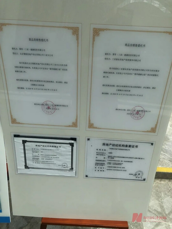 根据展示的商品房销售委托书,2020年10月25日及26日,国寿三亚分别与上述两家房产经纪公司签订代理销售协议,两家公司作为联合销售代理机构,负责“国寿健康公园”项目的销售代理工作。委托范围为低层联排酒店、多层酒店及酒店主楼剩余的全部房源。