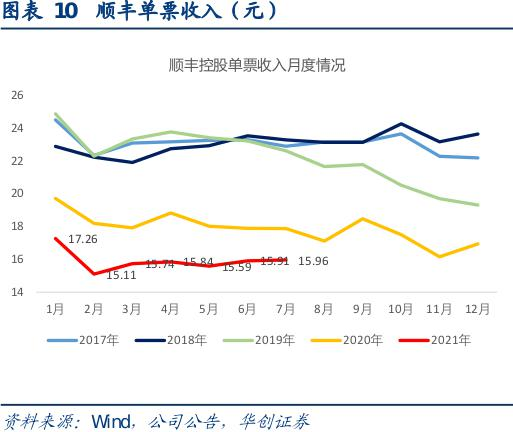 从最新经营数据看,顺丰控股7月单票收入达到15.96元,环比已出现回升,但与2020年相比仍有较大差距,同比下滑10.7%。