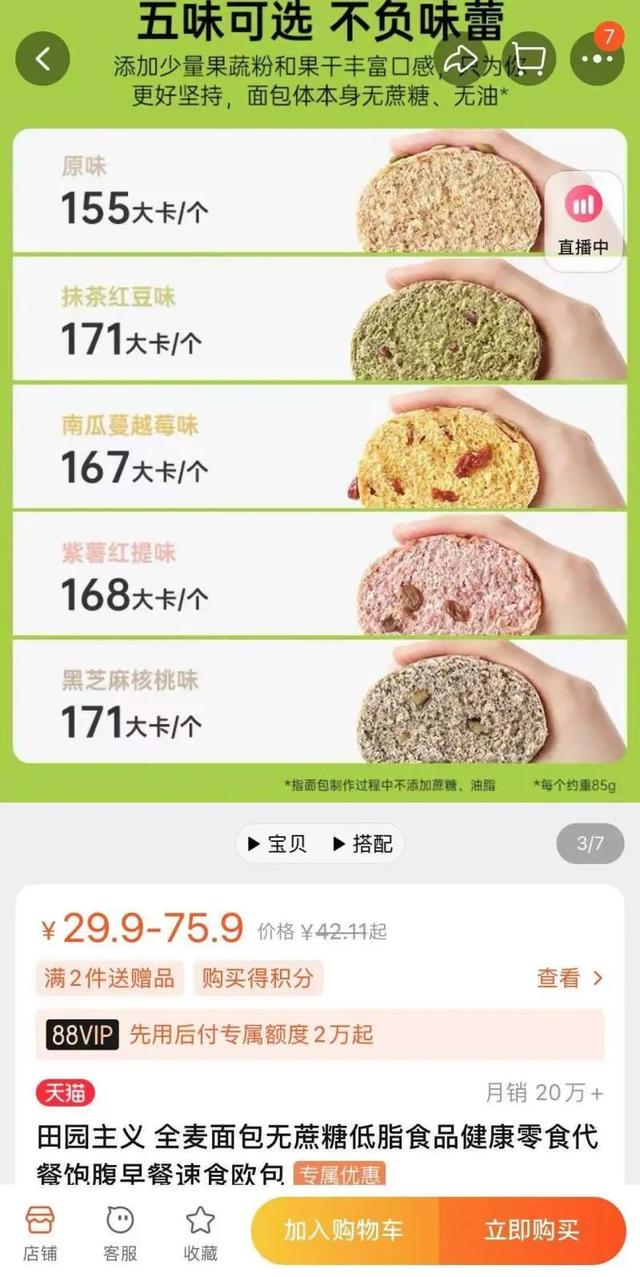 8月30日“上海市消保委”微信公众号发文:《号称销售第一、薇娅带货的田园主义全麦面包,实测能量高出宣传40%》。