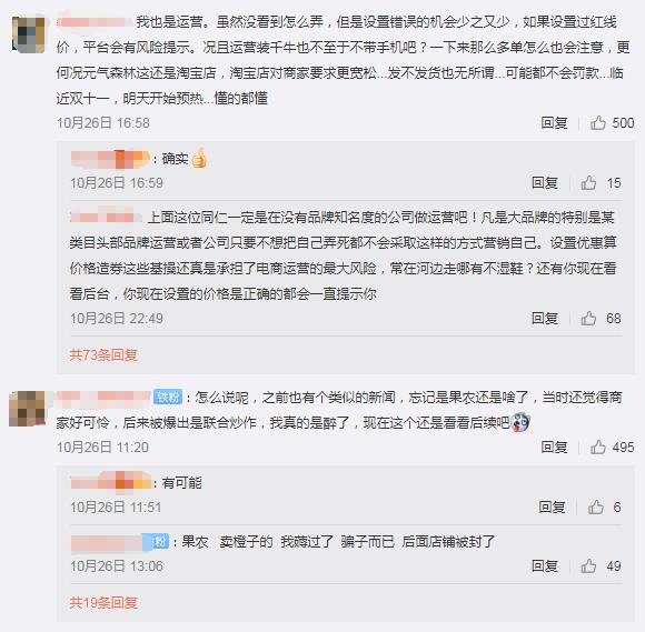 值得注意的是,在不少网友纷纷下单,大喊“薅羊毛”甚至“宰羊”的时候,也有网友提出质疑,是无心之举还是刻意营销?有自称是运营的网友表示:“设置错误的机会少之又少,如果设置过红线价,平台会有风险提示。”不过,也有网友指出:“凡是大品牌的,特别是某类目头部品牌运营或者公司,只要不想把自己弄死,都不会采取这样的方式营销自己。设置优惠算价格造券这些基操还真是承担了电商运营的最大风险。”