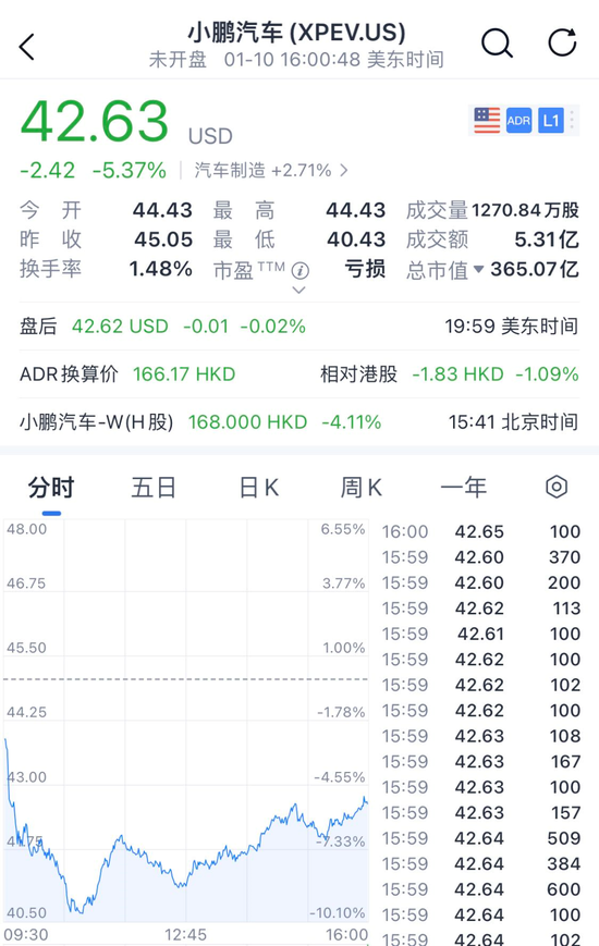 昨晚美股,小鹏汽车更是一度跌超10%。