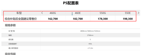 全新P5全系上涨4800-5400元不等,最新补贴后售价为16.27-22.93万元;