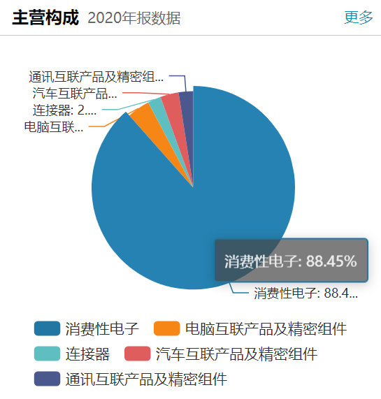 公开资料显示,立讯精密是苹果供应链企业,为苹果代工耳机、手表和手机,主要业务是为客户提供高速互连、声学、射频天线、无线充电、震动马达、通信基站相关产品的解决方案。