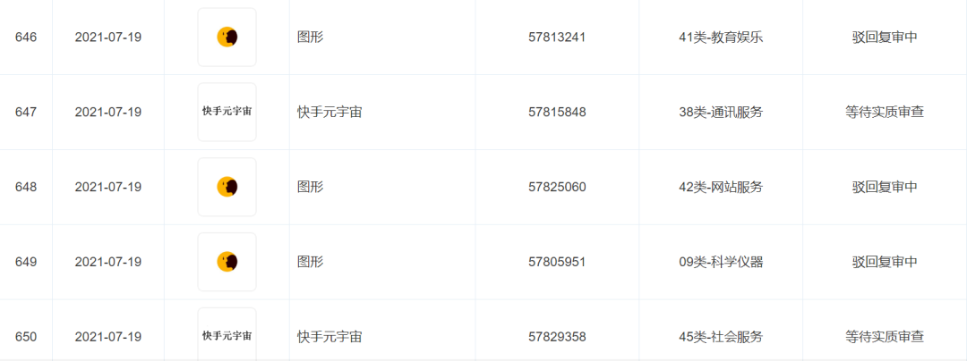 虽然快手尚未明确进军元宇宙,但此前已有运作迹象。2021年7月,快手关联公司北京达佳互联信息技术有限公司(下称“达佳互联”),申请注册了多个“快手元宇宙”商标,当前显示仍在等待实质审查。