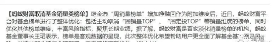 近日,蚂蚁财富取消基金销量类榜单。其实早就该这样了,基金并不是消费品,并不是说买的人越多就质量越好。基金作为投资产品,单个规模不宜太大,否则很容易出现各种各样的问题。如果当初不是蚂蚁财富的瞎宣传,就不会有那么多人一窝蜂地去买张坤、葛兰跟蔡嵩松的基金,导致他们的基金船大难掉头。