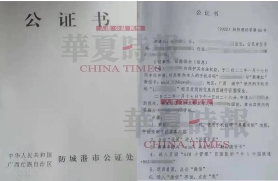 阿英告诉记者,在上交前,她使用这部三星手机将聊天记录等资料截图,并通过梁建红的微信号将截图等资料发送到了自己的手机上。这些证据都已在公证机关进行了公证。