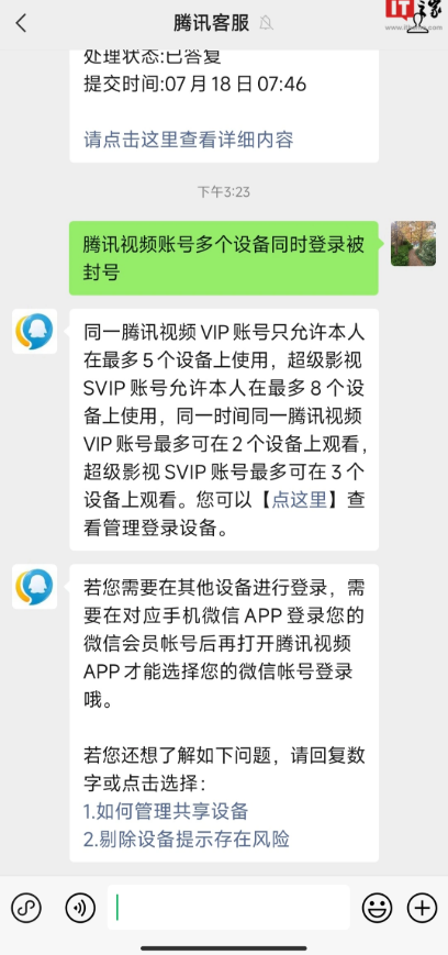 原标题: 腾讯视频客服回应多设备登录被封号:同一时间最多可在 2 个设备上观影