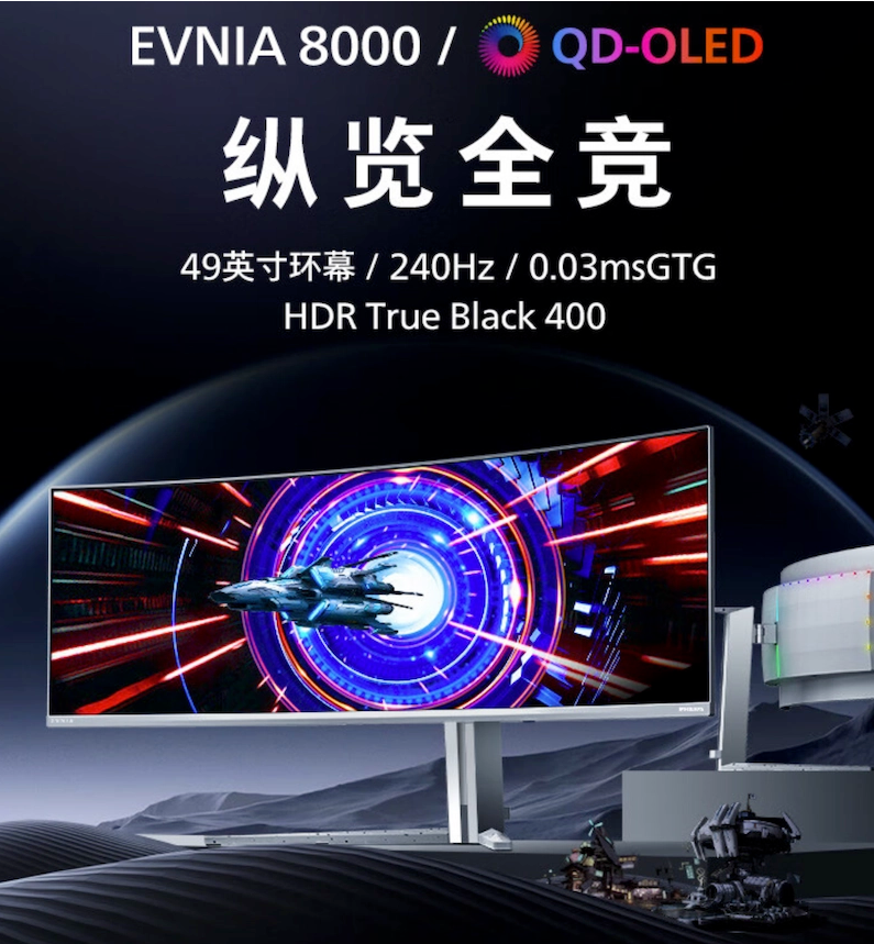 9 月 19 日消息,飞利浦 Evnia 系列显示器新型号 49M2C8900 现已正式开卖,49 英寸 双 2K 240Hz OLED 带鱼屏规格,到手价为 9999 元。