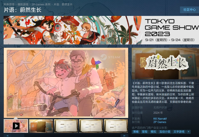 9 月 19 日消息,意识流养成类模拟器《片语:蔚然生长》日前上线了 Steam 页面,玩家将在游戏中扮演一位“中国父亲”,肩负起家庭。该游戏预计于明年正式发售,感兴趣的小伙伴们可以进入商店页面了解。