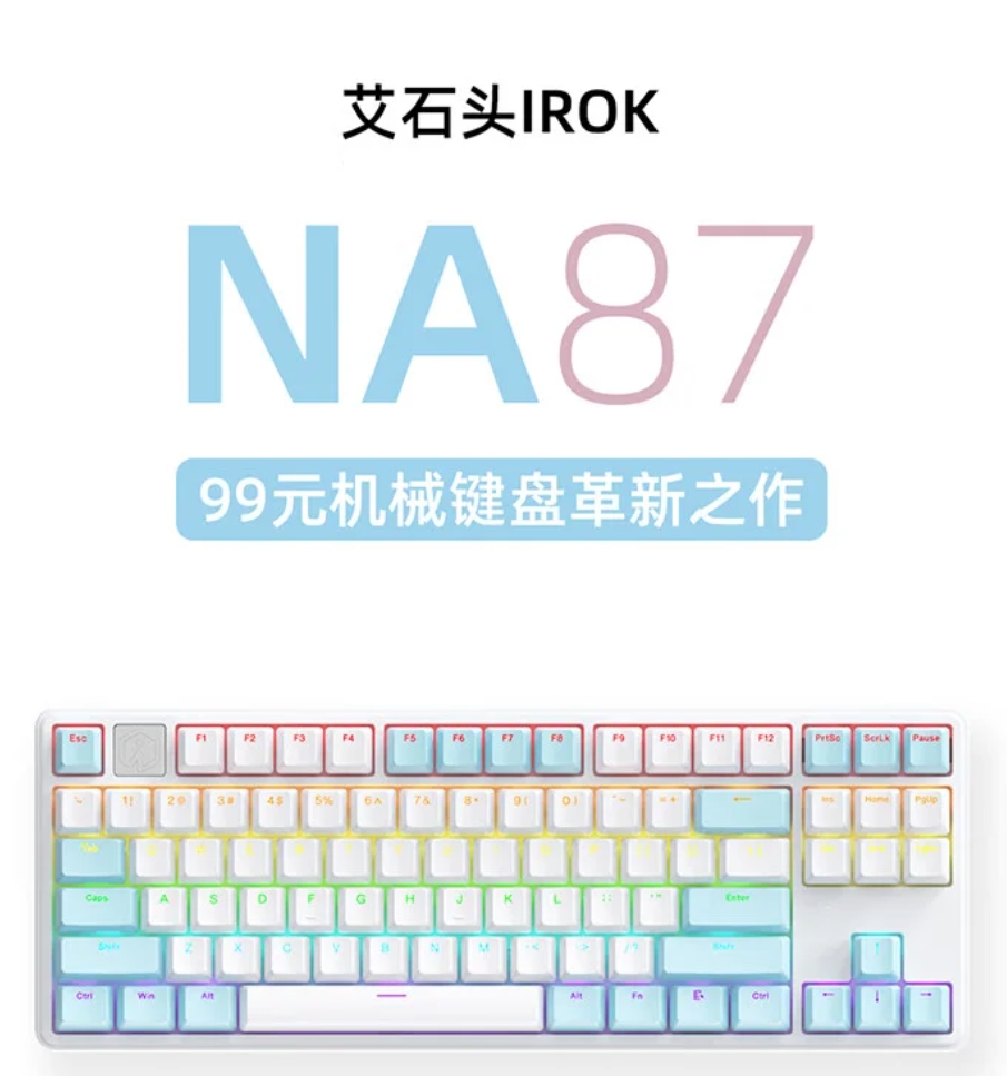 IROCK在中国市场推出了NA 87有线机械键盘,目前 JD.com 上可以预订,折扣价为99元人民币(14美元)。
