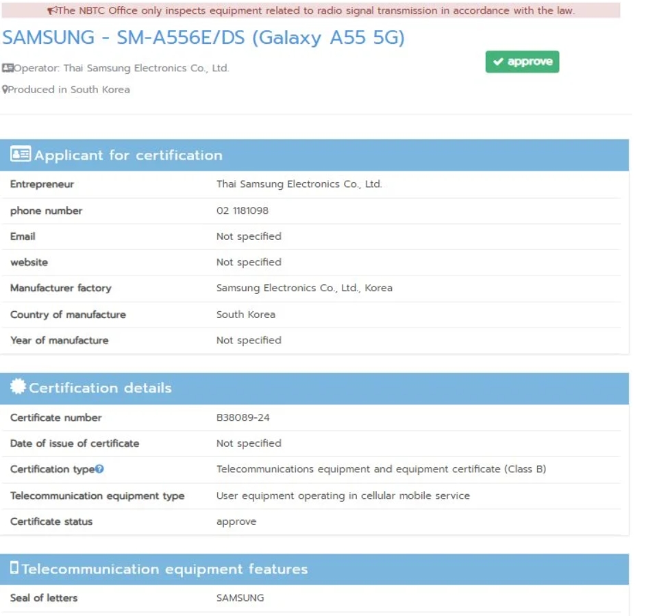 三星将推出几款新智能手机,包括 Galaxy A55、Galaxy A35、Galaxy M55、Galaxy F55 等,以更新其整个中端智能手机系列。大多数即将推出的三星智能手机都在全球的公共认证网站上进行宣传。三星 Galaxy A55 和 Galaxy A45 已经出现在 BIS India、Bluetooth SIG、FCC、印度尼西亚的 TKDN 和韩国的 NRRA 上。Galaxy A55 5G更进一步,分别通过了印尼NBTC和中国工信部的认证,型号代码分别为SM-A556E和SM-A5560。