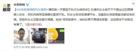 但是更让人震惊的是,据《温州都市报》报道,乐清的林女士前天下午曾坐过犯罪嫌疑人的车。在从乐清虹桥到翁垟的途中,司机将林女士带至偏僻处意欲不轨,但林女士侥幸逃脱。林女士随后将此事投诉至滴滴平台,但截至在赵某受害案案发,林女士都没有收到滴滴的相关反馈和处理结果。