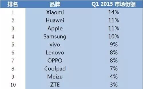 近期关于Q1国内市场份额谁是第一的问题,小米与华为又争了起来。小米援引的是IHS Technology的调研数据:小米Q1销量1420万部,市场份额14%,排名第一;华为Q1销量1120万部,市场份额11%,排名第二。