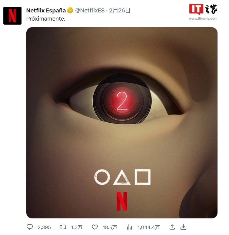 Netflix 西班牙官推发布了《鱿鱼游戏》第二季的首张海报,并宣布“Próximamente(很快)”,但没有公布具体时间。