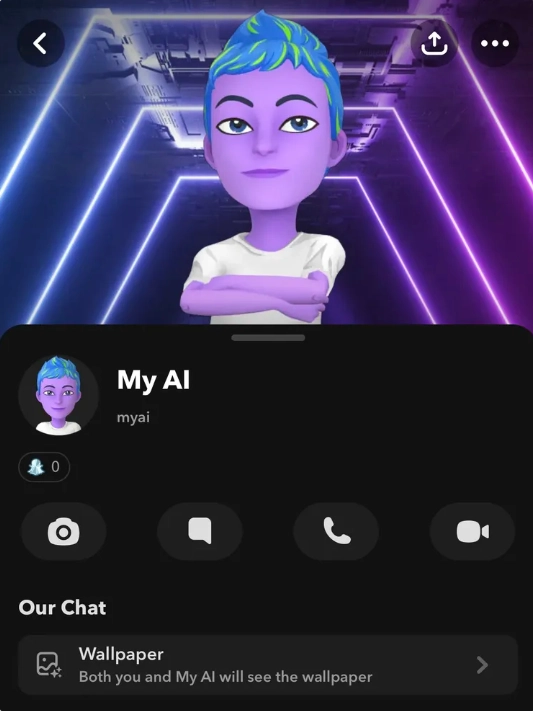 IT之家注意到,My AI 的个人资料页面看起来和其他 Snapchat 用户的个人资料一样,尽管有自己的外星 Bitmoji。这种设计表明,My AI 是要成为 Snapchat 里面的另一个朋友,让用户和他一起玩,而不是一个搜索引擎。