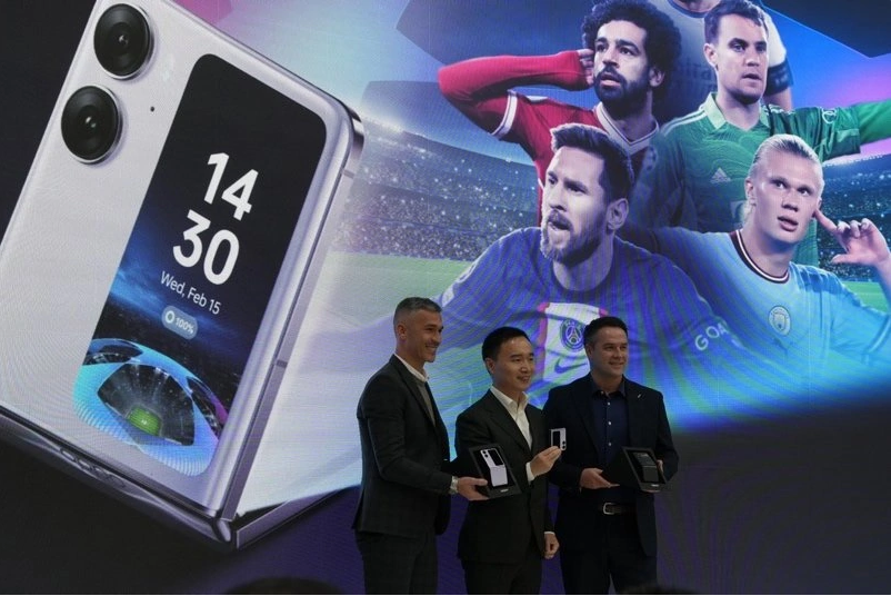 OPPO Find N2 Flip 日前在伦敦发布海外版,售价 899 英镑起,将于 2 月 28 日在欧洲市场正式开售。发布会上 OPPO 还邀请了 UEFA 欧冠联赛大师迈克尔・欧文以及路易斯・加西亚,并宣布而为成为 OPPO Find N2 Flip 的首批海外用户。目前,OPPO Find N2 系列已成为欧洲足球冠军联赛官方指定用机。