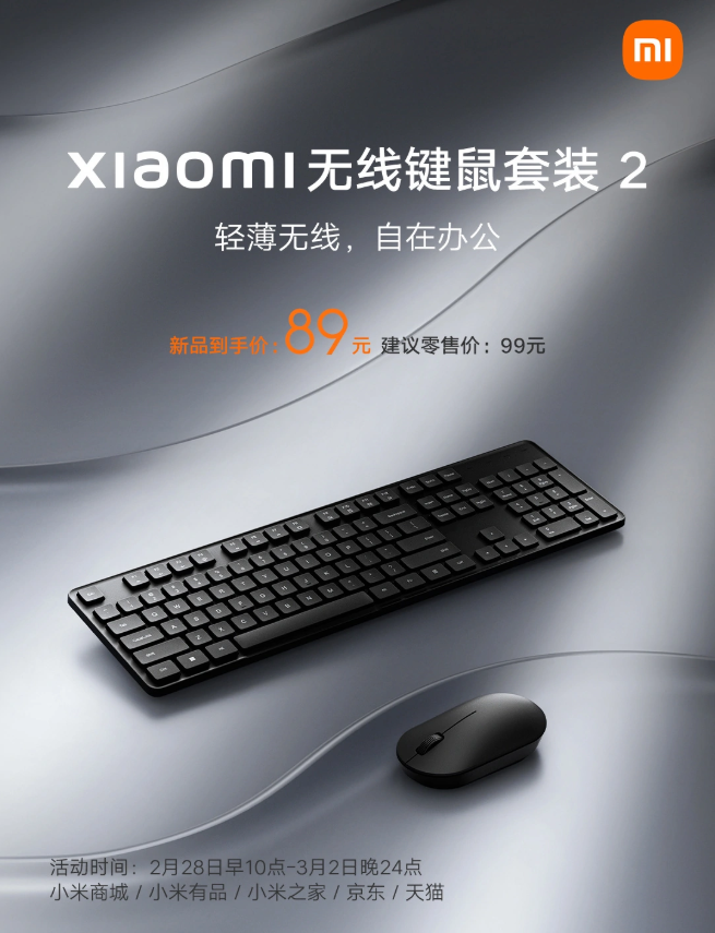 2 月 28 日消息,小米今天推出了 Xiaomi 无线键鼠套装 2.同时宣布正式开售!新品首发价 89 元。