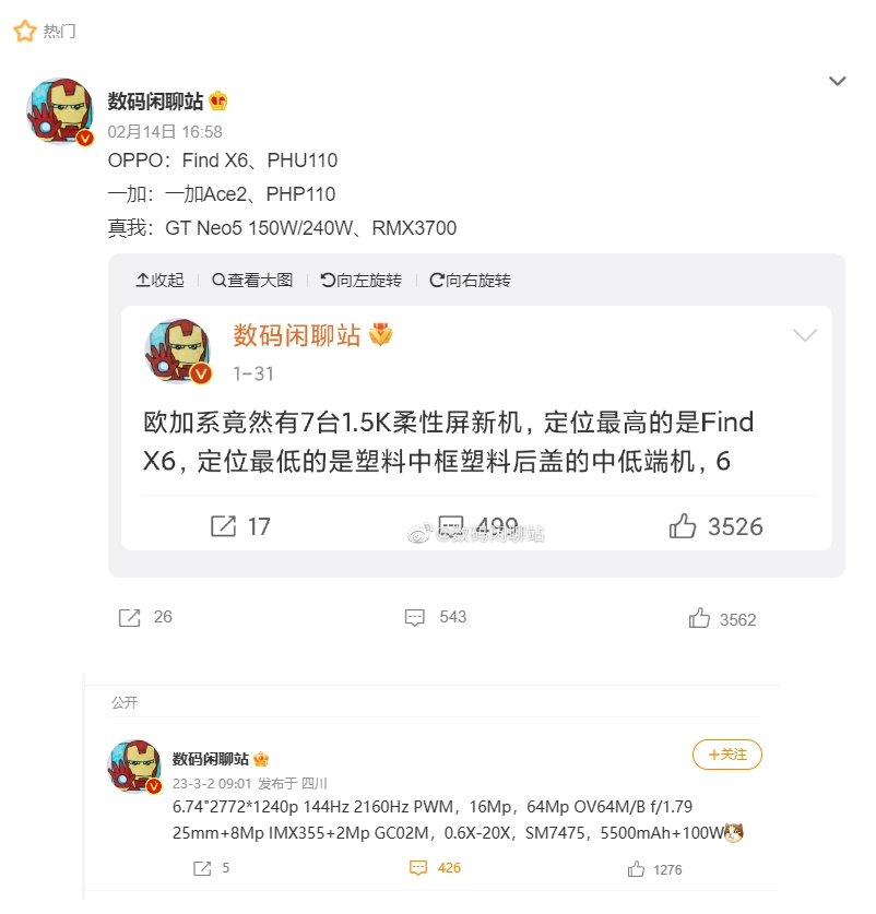 根据之前各路爆料来看,这款机型预计会在今年 4 月发布,有望搭载高通骁龙 7+ Gen 1 芯片(SM7475),采用 6.74 英寸 天马 T7+ 柔性 OLED 屏幕,支持 2772*1240 分辨率、144Hz 刷新率和 2160Hz PWM 调光,预计将配备 5500mAh 电池。