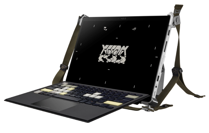ROG 幻 X-ACRNM RMT02 采用二合一设计,磁吸键盘可自主拆卸,可实现传统笔电到平板电脑的转换。笔记本模式下,玩家们可以将其作为正常的办公设备,亦可搭配多功能背带,在脱离键盘的情况下以平板模式使用。