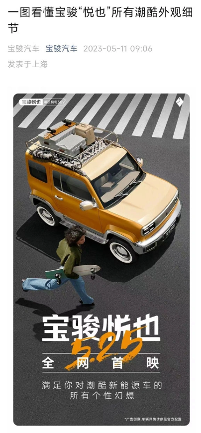 咱们五菱车企是越做越出色了,这几天一连发布了宝骏悦也的SUV车型和皮卡车型,看起来就像是Q版车型,特别的小巧可爱。宝骏悦也纯电SUV之前已公布过他们是外观配色,还有车身后有显示屏的表带设计,这款车型的每一个设计都很有特色。近日又将它的外观细节公布,采用Square Box-方盒子设计,车顶还有行李架,特别适合野外露营。宝骏悦也SUV还有更多的车型设计细节介绍,大家可阅读下文。