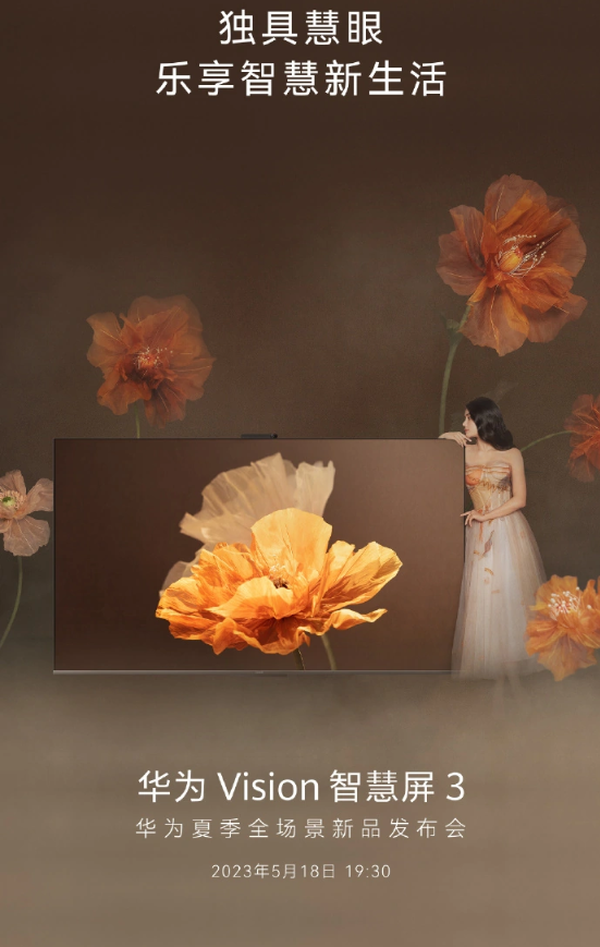 5 月 11 日消息,华为将于 5 月 18 日 19 点 30 分举行华为夏季全场景新品发布会,根据官方最新消息,华为 Vision 智慧屏 3 将在该发布会上亮相。