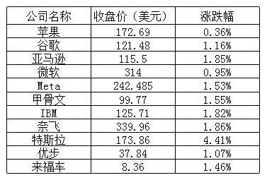 道琼斯指数收于 33420.77 点,上涨 408.63 点,涨幅 1.24%;标准普尔 500 指数收于 4158.77 点,涨幅 1.19%;纳斯达克指数收于 12500.57 点,涨幅 1.28%。