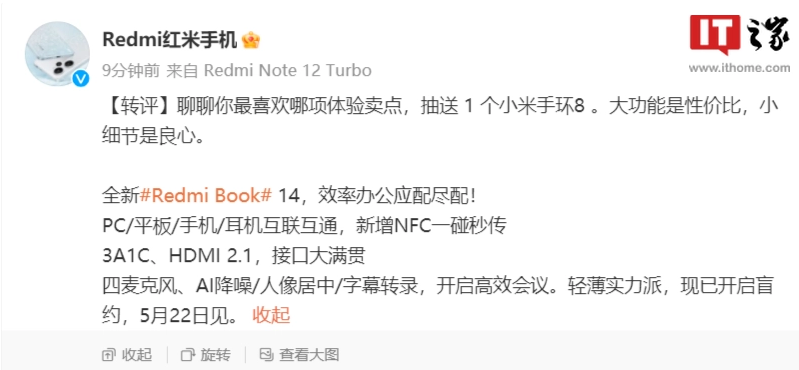 5 月 18 日消息,小米旗下的 Redmi Book 14 2023 款笔记本新品将于 5 月 22 日正式发布,今天 Redmi 红米手机官方微博带来了这款新品的更多预热。