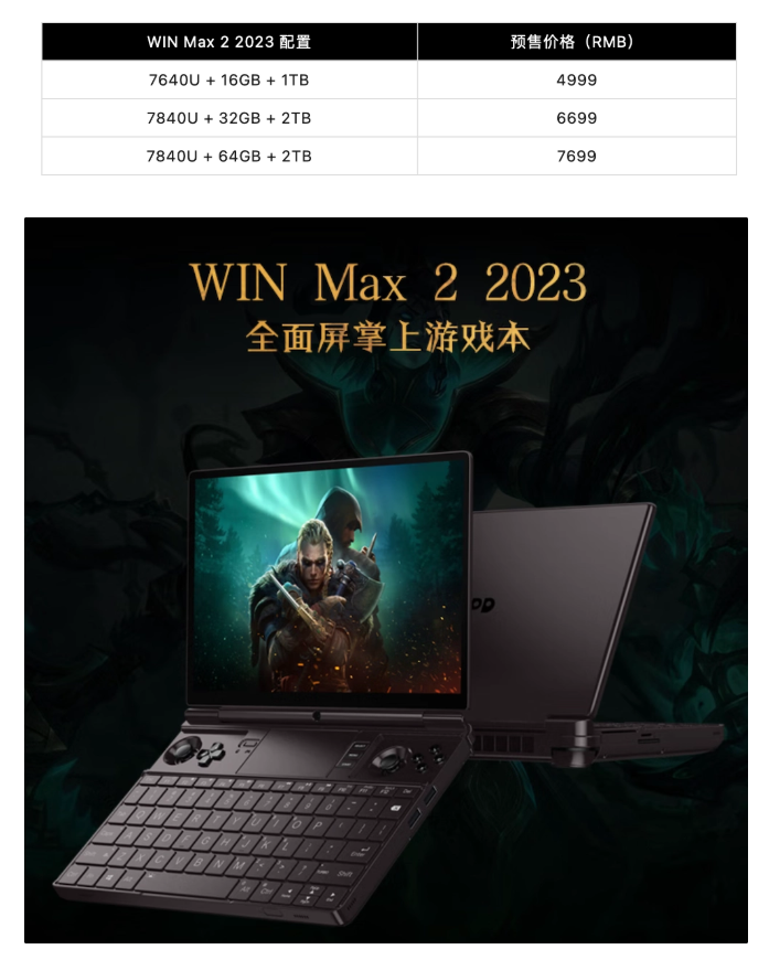 原标题:GPD Win Max2 2023 掌上游戏本上架:R7 7840U + 32G,6699 元