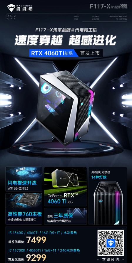 5 月 25 日消息,机械师 F117-X 未来战舰 III 代新增 RTX4060Ti 版本。