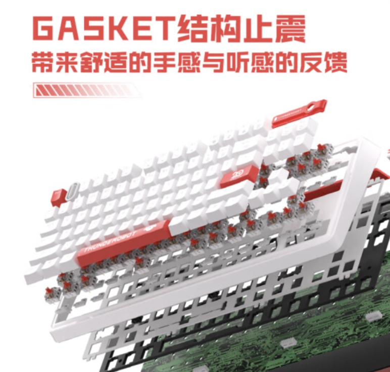 5 月 25 日消息,雷神推出京东 20 周年纪念版 K87 Pro 机械键盘,相较于传统键盘,K87 Pro 机械键盘采用 80% 布局设计,内部采用 GASKET 结构设计,可以消除大部分空腔音;采用 PBT 双色注塑键帽,