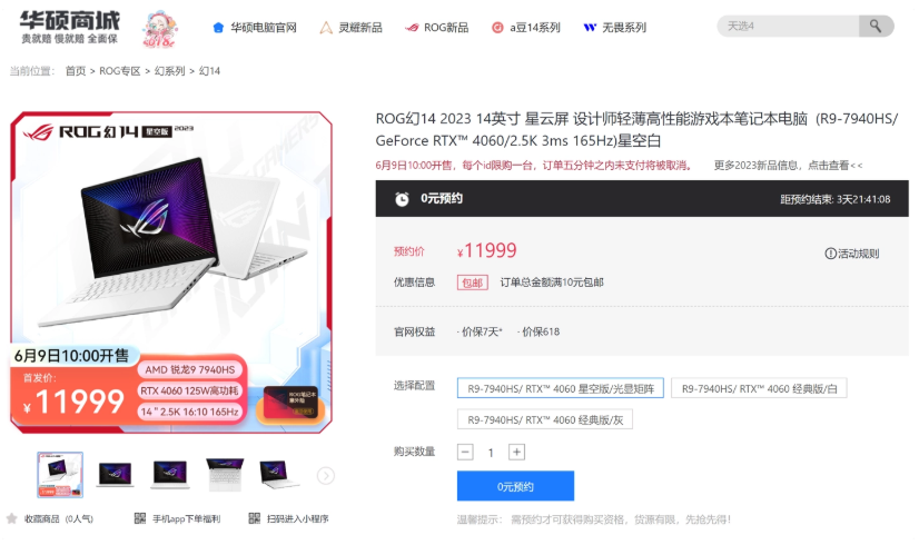 这款笔记本目前已开启 0 元预约,将于 6 月 9 日 10 点正式开售。