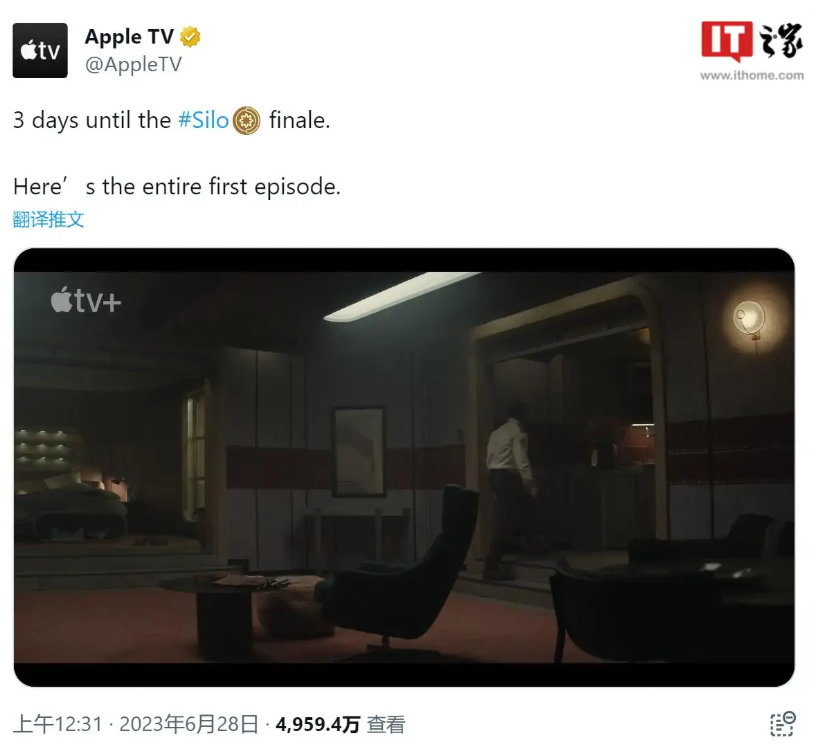 近日,苹果在 Twitter 上放出了科幻网剧《羊毛战记(SILO)》的第一集,时长达到 1 小时,这也是苹果首次在 Twitter 上放出整集网剧视频。不过作为 Apple TV + 服务的热播剧目之一,苹果当然不会继续放出《SILO》的后续剧集,这次尝试显然也是为了吸引用户订阅 Apple TV + 服务。