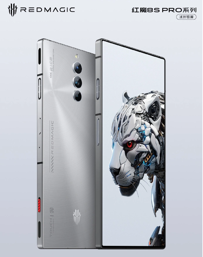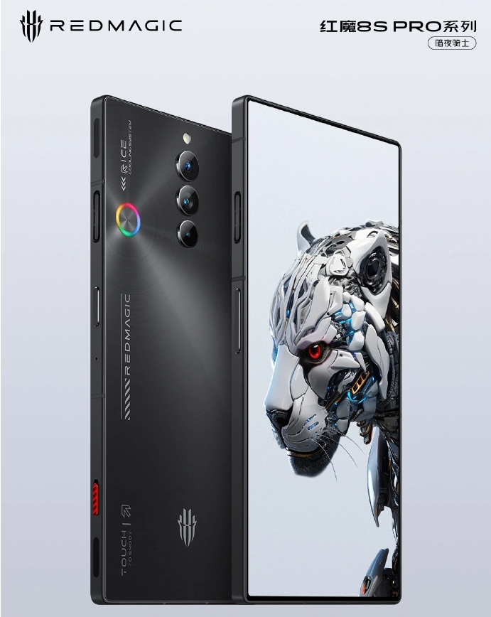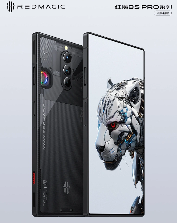 除此之外,红魔 8S Pro 手机的外观设计也已经公布,该新机将提供暗夜骑士、氘锋透明以及冰封银翼三款配色,三款机型均配备 RGB 灯效风扇。由于该手机正面采用真全面屏设计,正面观感可以说非常不错。