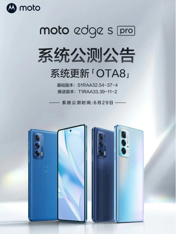 6 月 29 日消息,摩托罗拉 edge s pro 手机获推 MYUI5.0 系统更新,基础版本为 S1RAA32.54-37-4.推送版本为 T1RAA33.39-11-2.