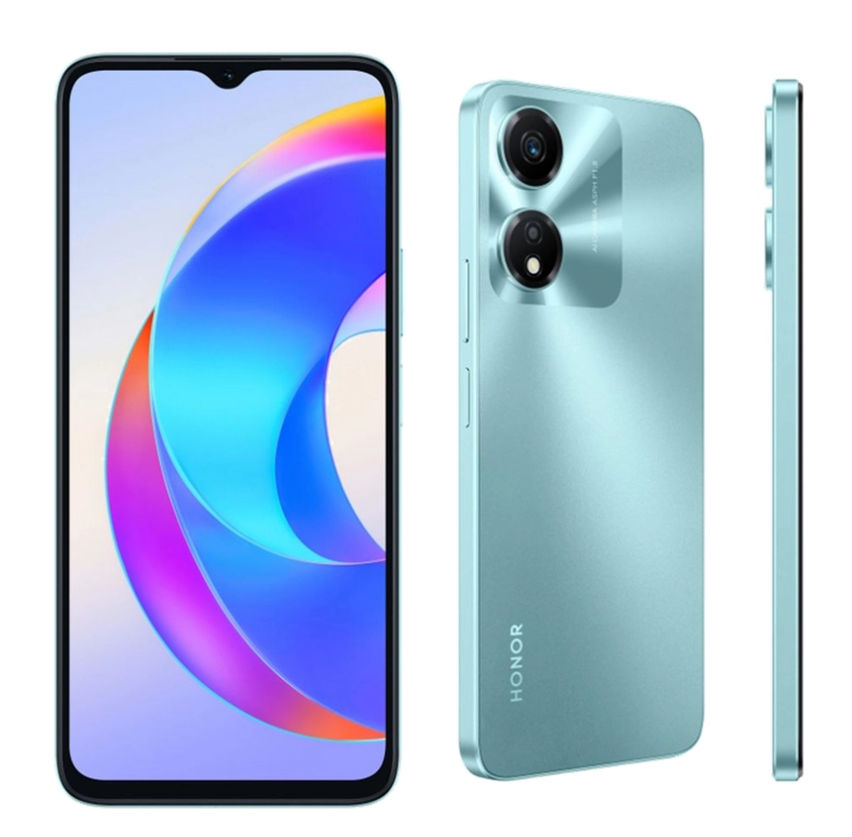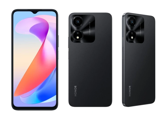 荣耀 X6a 手机配有绿色和黑色选项。机身正面配备一个 LCD 显示屏,带有用于自拍相机的 V 形水滴槽口。
