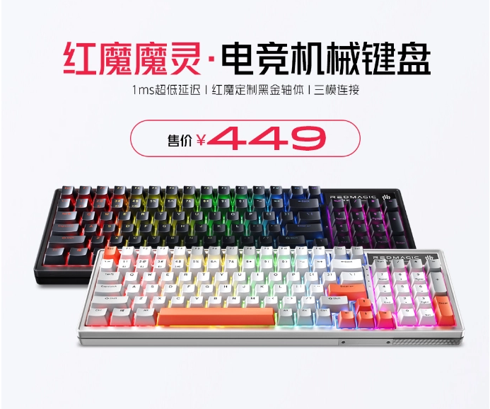 7 月 11 日消息,红魔魔灵・电竞机械键盘今日 10:00 正式开售,首发价 449 元。