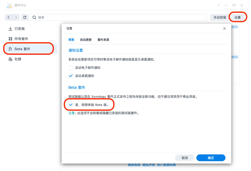 IT之家注:用户可在【套件中心】开启体验 Beta 版,就可以安装体验测试版 Drive。